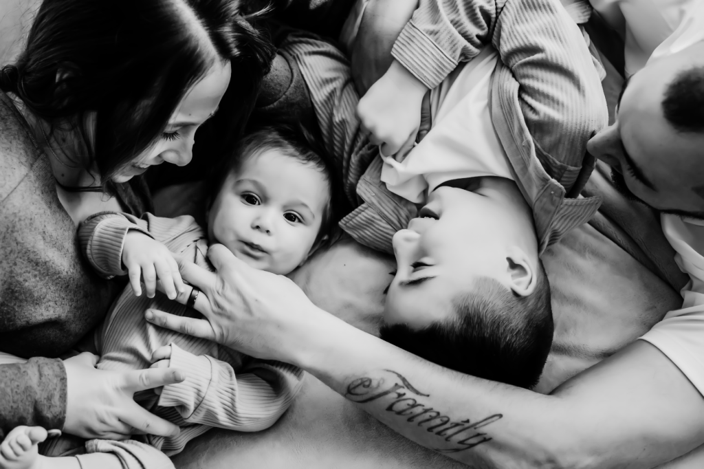 This little buddy was so sweet for his session. And of course I couldn’t pass up the perfect “family” tattoo on dad. I can’t wait for his next milestone session! – Jenay